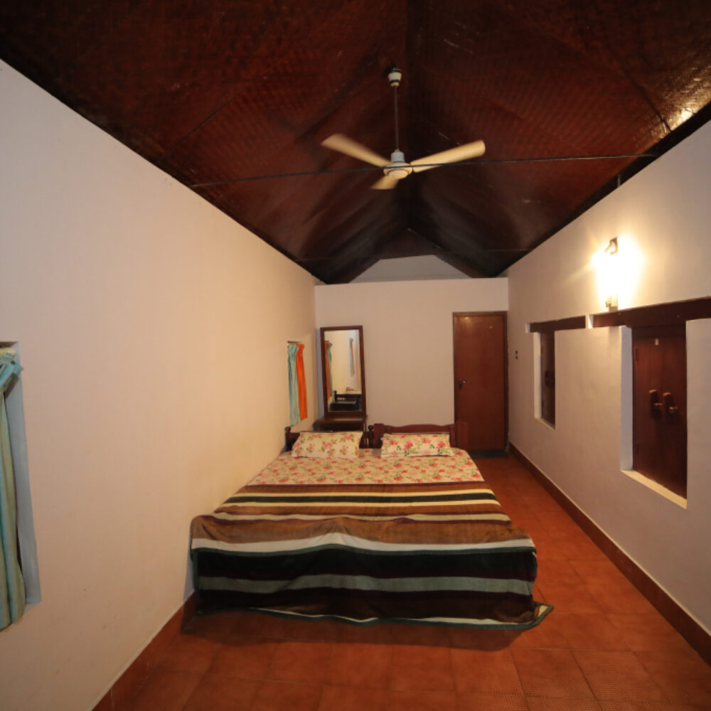 Chandralayam Homestay – the best homestay in Kasargod offers Independent Couple Cottage (Non-AC) with Double Bed that makes a unique and secluded accommodation. With a garden view, the room is perfect for couples seeking a romantic getaway.